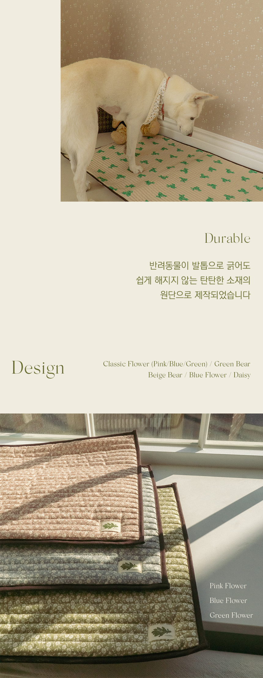 반려동물에게 따뜻하고 포근한 공간을 선물해주기 위해, 서로 다른 특성을 지닌 원단을 겹쳐